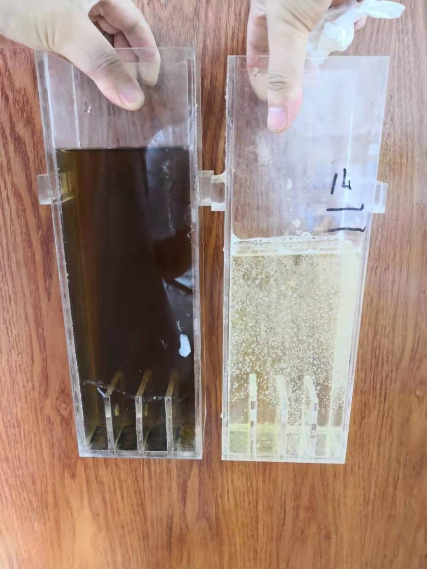 经过电解处理后的含氰废水cn的浓度由之前的15—25mg/l变为cn浓度小于0.1ug/l。对于医院的污水处理是很是必要的,因为它的污水含菌量成分很高,而在过去对于它的处理也多是采用氯气或漂白粉,但是效果并不是很尽如人意,之后的几年人们又采用电解盐水,使用ir—ru—sn—mn—ti五元素涂层钛阳极。假设医院排放的污水中大肠杆菌量为4×106个/ml,细菌总数为5×106个/ml。通过电解盐水进行消毒后,十分钟后取出水样分析,发现大肠杆菌量为3×103个/ml,而每毫升细菌总量仅剩310个,杀菌率达到99.9%以上基本实现了零排放。